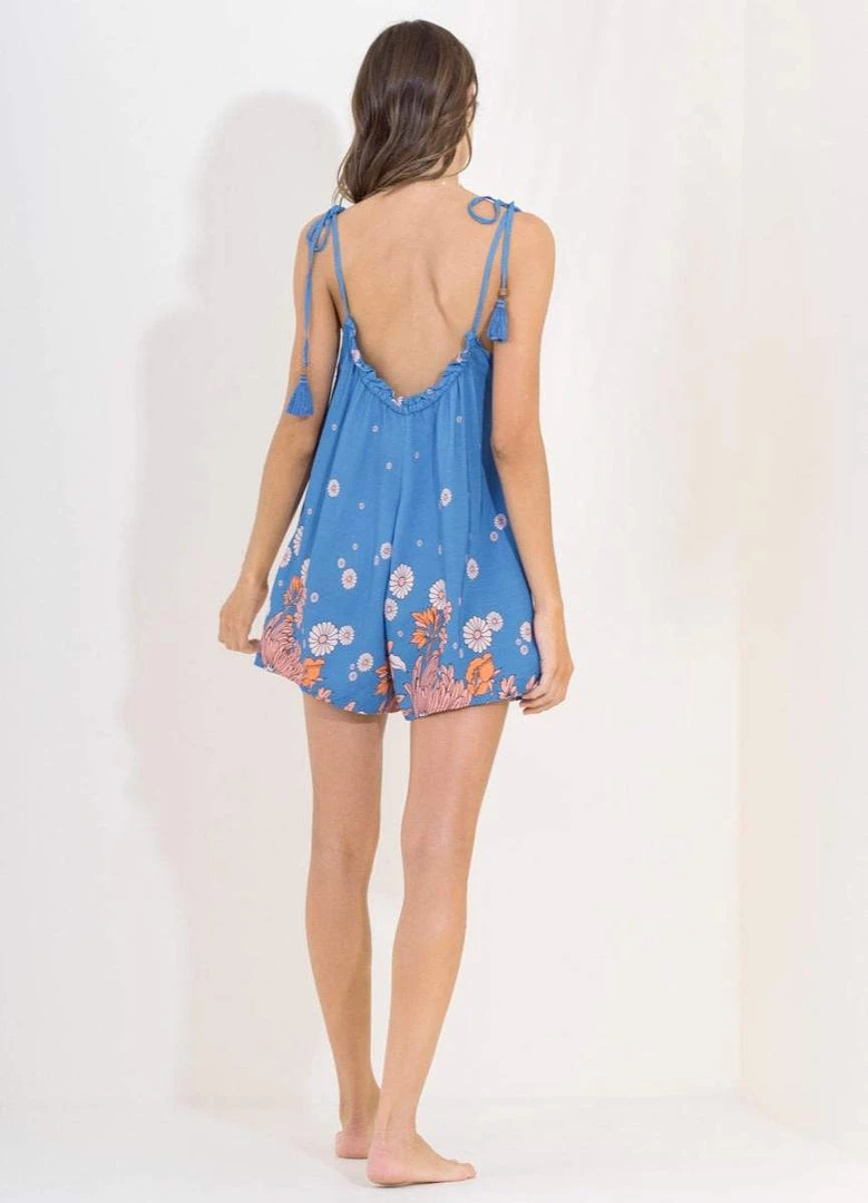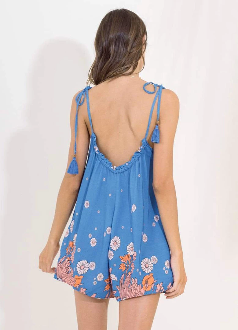 Imagine looking like this at the beach this summer! Cinzia, our Maajical open back romper is the piece to love for its light fit, fresh fabrics, and cute print