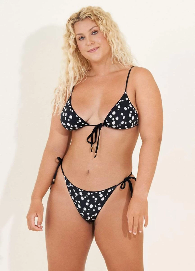 Connie, where have you been all our lives? The perfect sliding triangle bikini top for summer vacations. With adjustable straps that tie at the neck and front and its low coverage, this bikini top is a must for every girl!