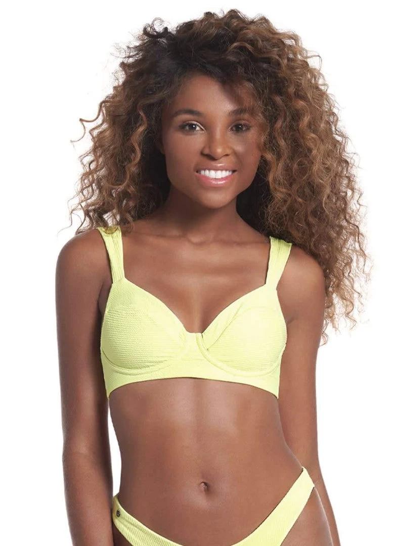 A flattering, Sexy Look is just one of the things Bailey provides. The Heart-shaped neckline makes this make this bikini top our most romantic top. The wide straps and underwire design are a plus! If you were looking for perfect shapes, this is it. This piece is made from recycled fibers.