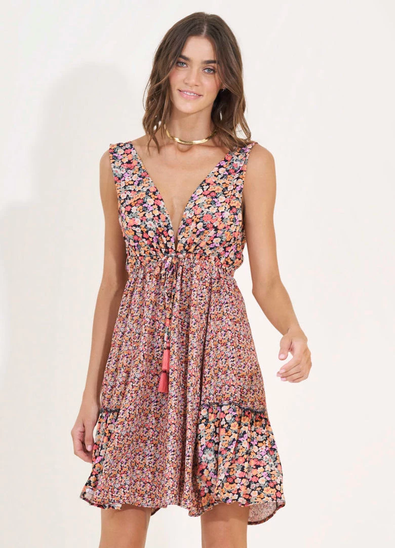 Pamela is the one you need for the days under the sun, a short dress with V cleavage and riffle details perfect for a sunny morning, an afternoon with friends, or a night full of music and fun memories.