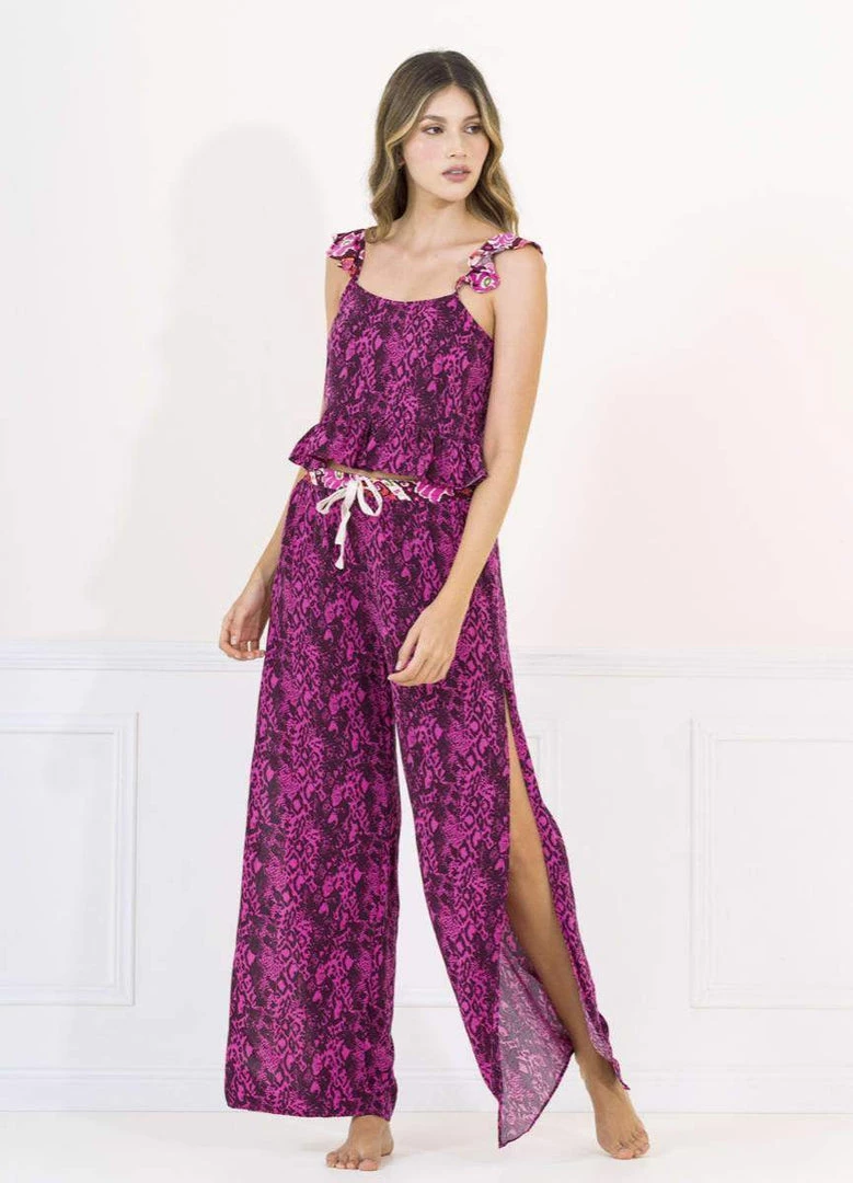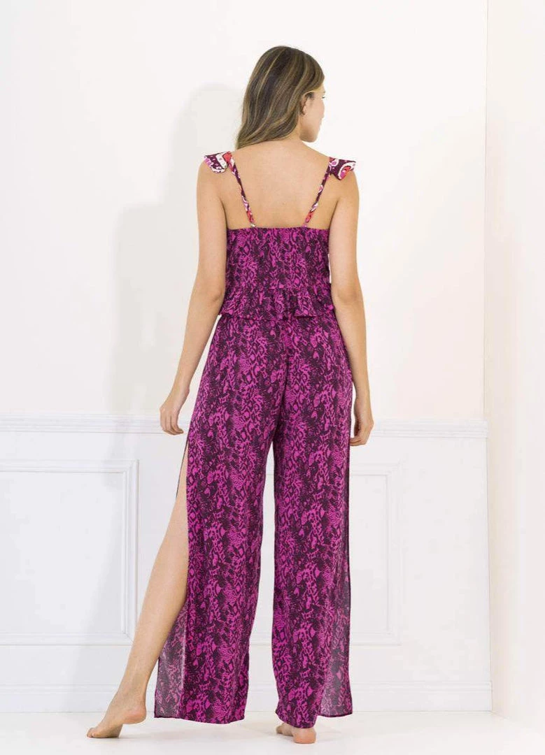 The trendy and comfy sleepwear set is perfect for sleeping on cold days. Its elastic bands on the waist and boots make these pants fit perfectly. Its shirt with cute details gives it a romantic look.