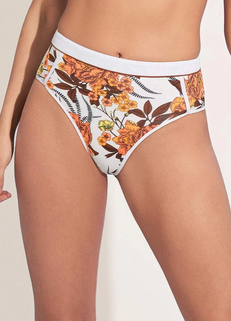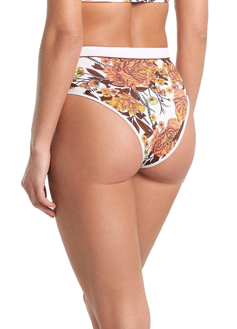 Summer break and poolside? Mod has the perfect color pallet and mix of prints to contrast with a sandy background. This piece has a high rise and is a high leg for that retro vibe, reversible for two looks in one, and perfect for all kinds of fun under the sun. Pair it with the Artist Top to make a perfect duo!