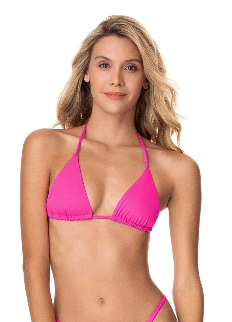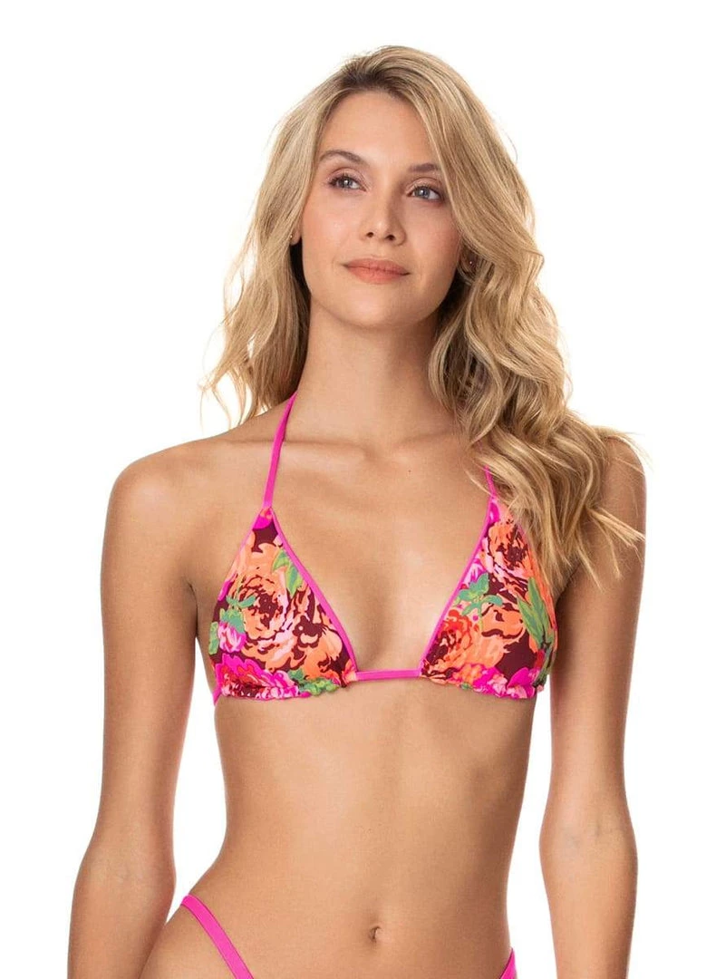 No tan lines? No problem! Heritage Fuchsia Balmy is the triangle top for getting that cinnamon shade one your skin. Its sliding under bust allows you to control the coverage you need, and easily tie or adjust its straps. With two looks in one thanks to the Maajical print on the reverse side, this bikini top is perfect for mixing and matching with other pieces of the Utopian Society collection.