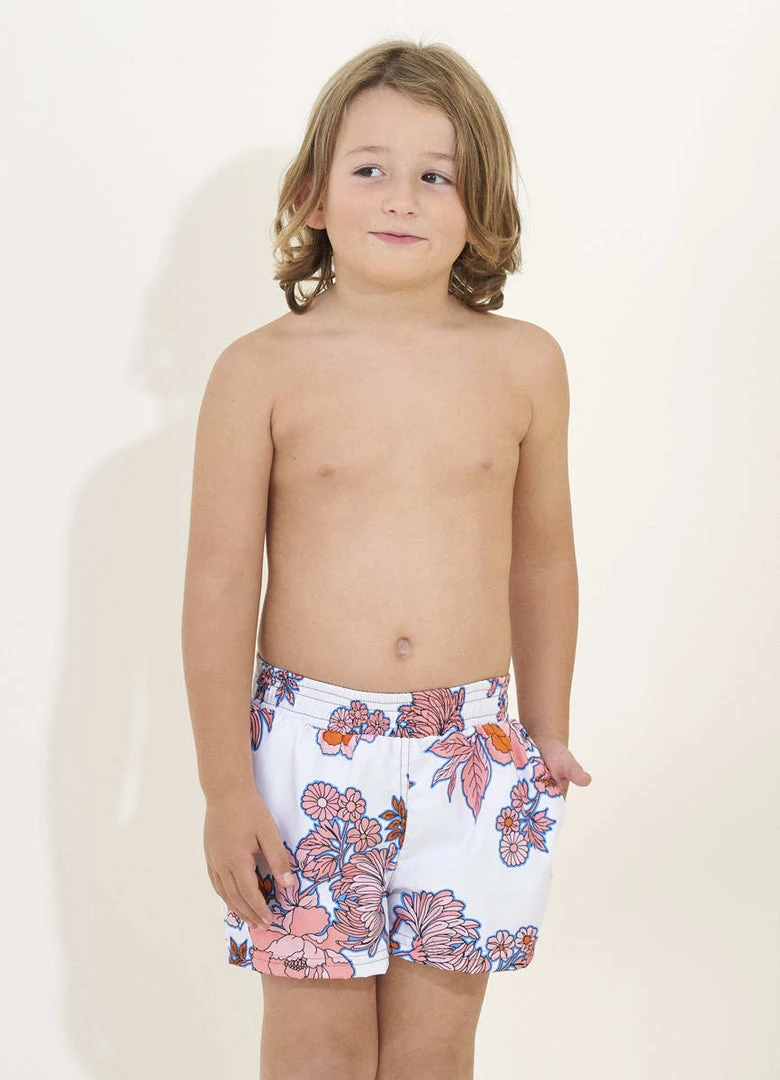 This Maaji swimming short for boys is ideal for them to be comfortable at the beach. It has convenient side pockets and an elastic waist that permits to adjust it as needed. It has lovely pastel colors, they will rock it on the beach!