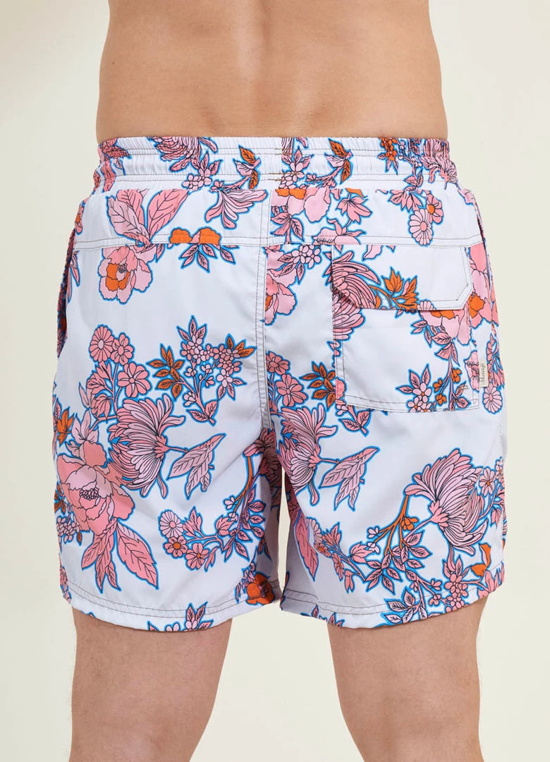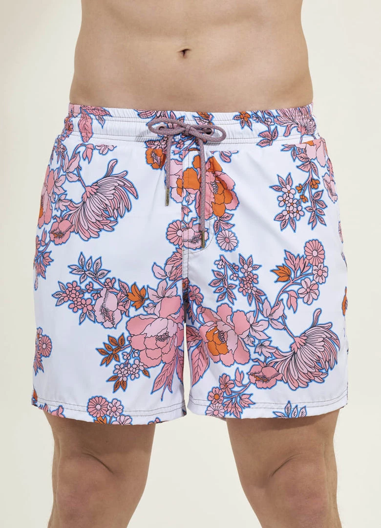 A perfect white Maaji sporty swimming short for men, for those who like tropical vibes, ideal for a sunny day!