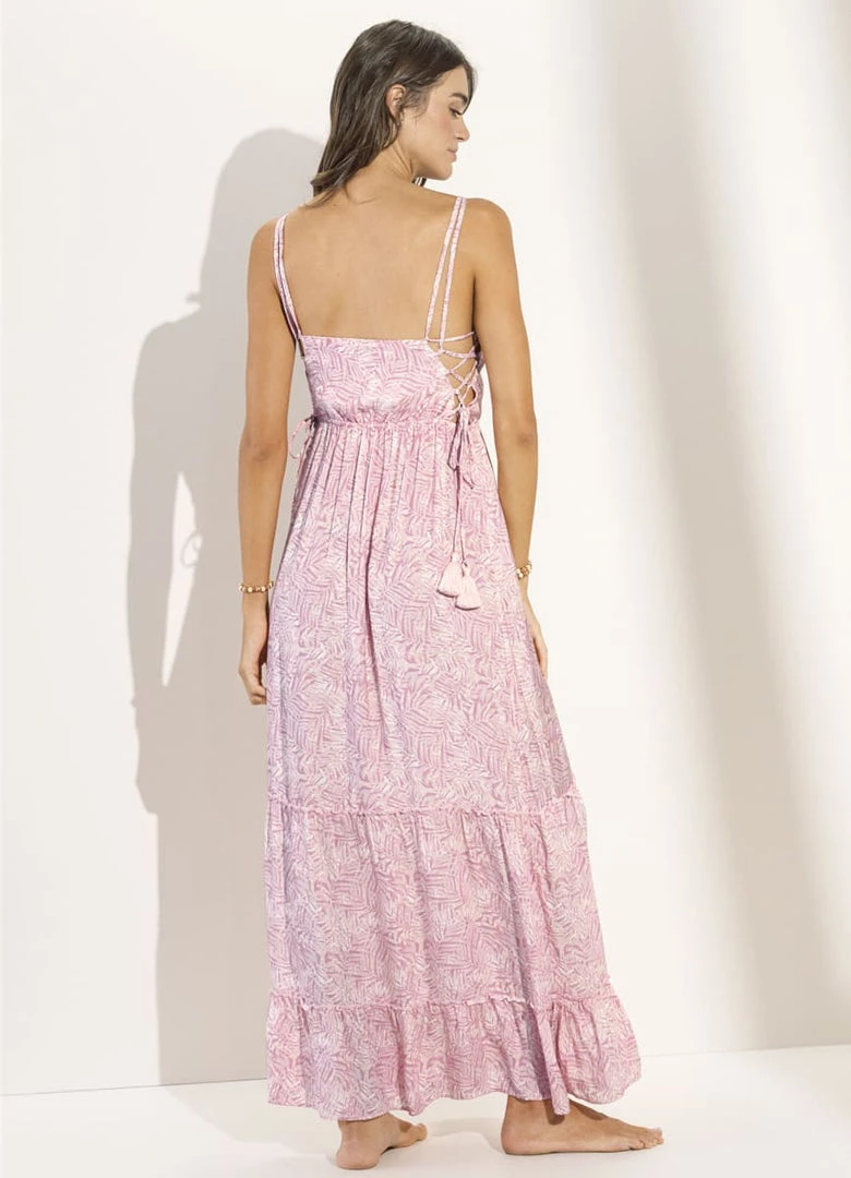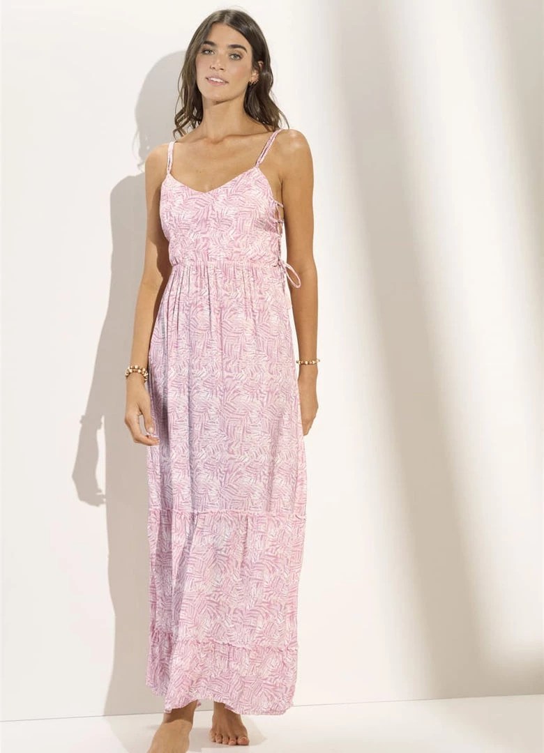 Nicole is the long Maaji dress that has a cleavage with intertwined straps on the sides for a sexy look perfect for a night on the beach