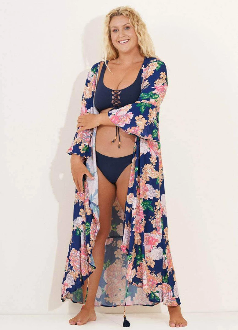 Lovely, stylish, and comfortable. Lotus is one incredible Kimono: long sleeves, floor-length, loose fit, and incredibly lightweight fabric. Wear it any time, and it will make you feel spectacular! Open or close, either way, you will look stunning.