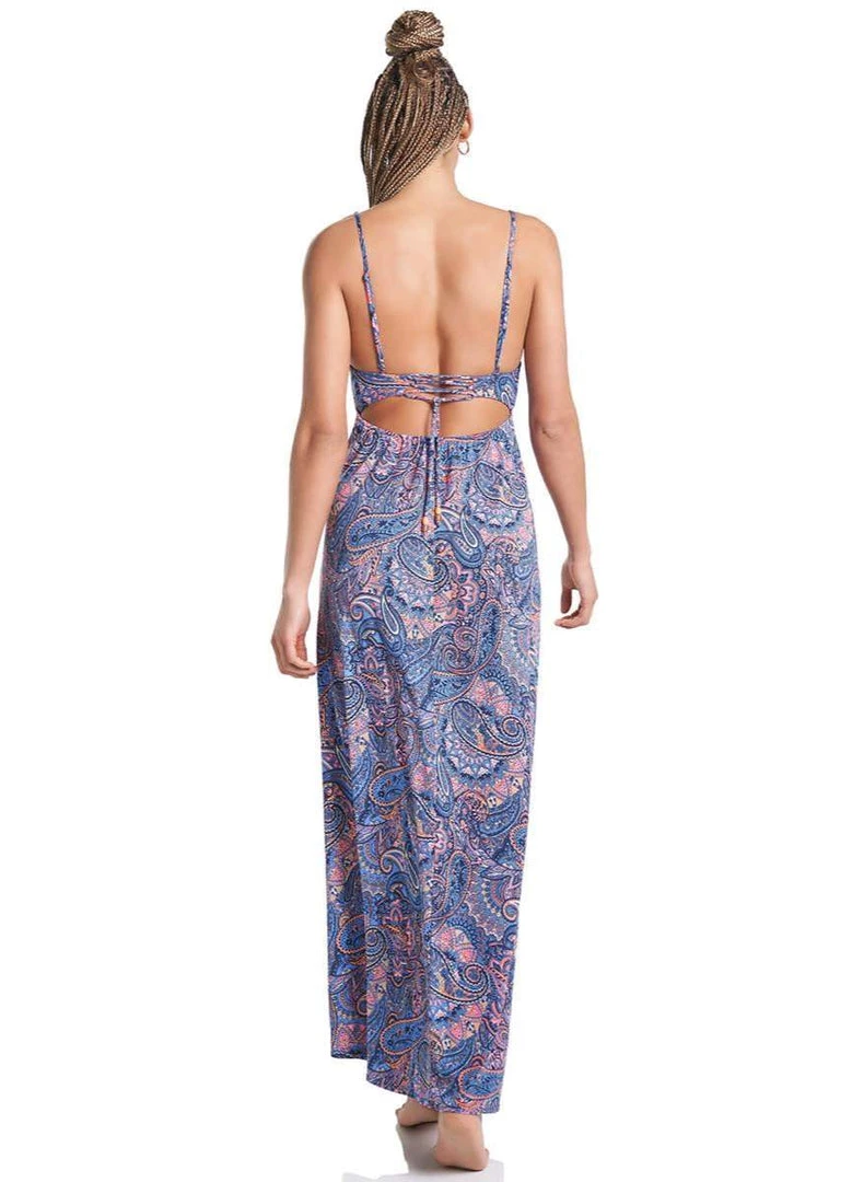 Start your magical days wearing the Crystal. This long dress has a cute cut-out front, maxi length, and colorful floral print. The natural waist, lace-up tie at the back, and contoured waistband will make the look picture perfect while having lots of fun!