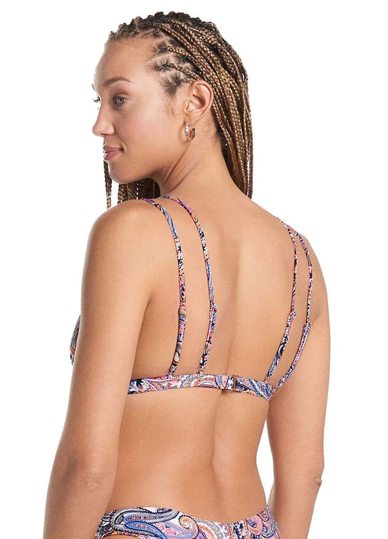 Jocelyn features double strapping for a stylish and secure fit. A risky piece for the girl that wants to show off a little extra skin. The hook in the back is adjustable up to many bust contours.