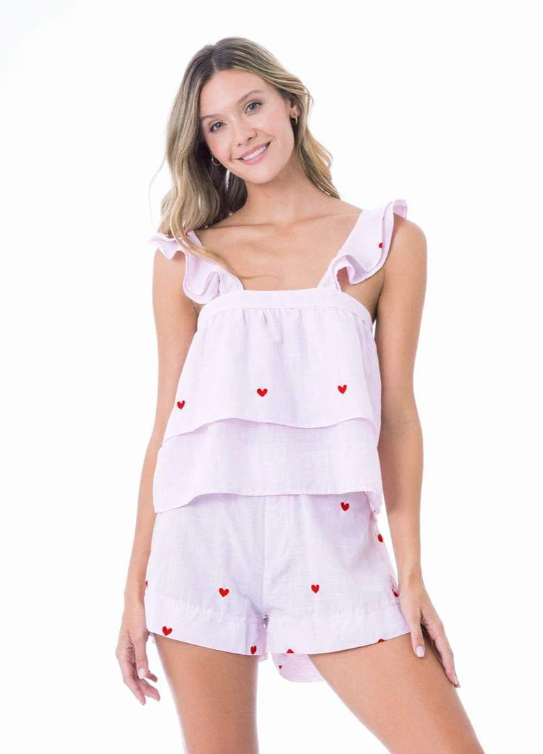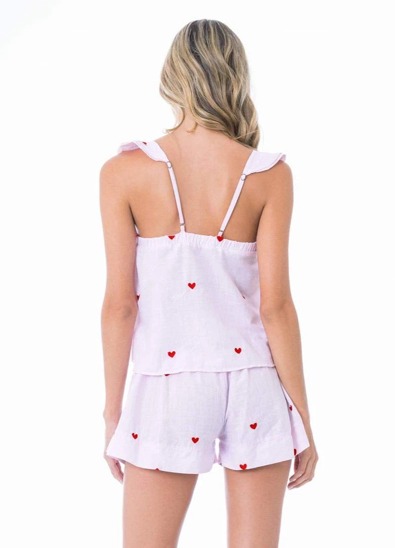 Wake up feeling unique since the early morning with our Jill pajamas! Its beautiful top with embroidery details, ruffles, wide suspenders, and adjustable shorts will give a cute and very comfortable touch to your nights.