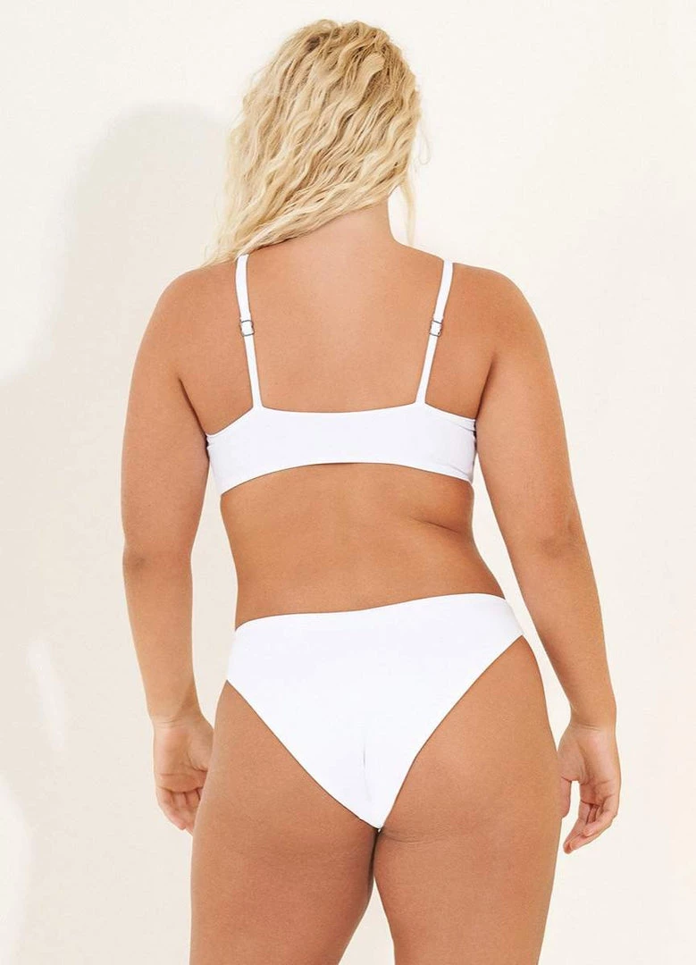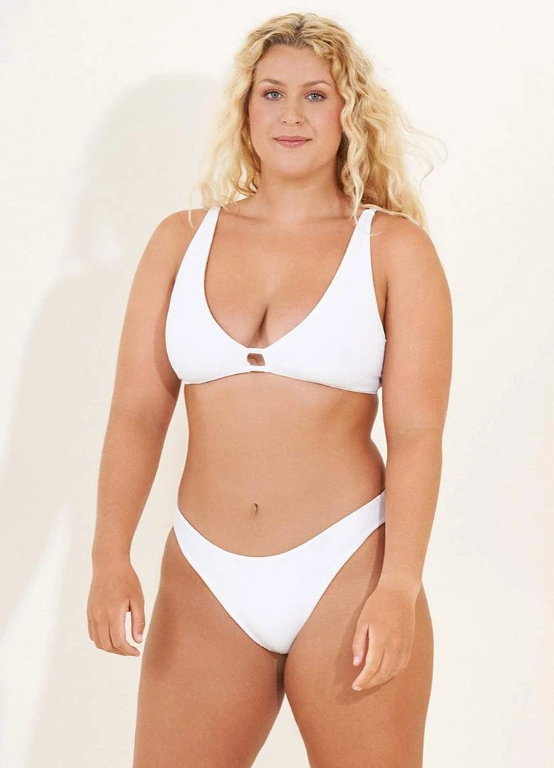 The Pearl will instantly transport you to a tropical getaway. Palms, coconuts, and ocean breeze. A sporty silhouette with lower coverage ladder detail in the front, adjustable straps, and V deep neckline will perfectly suit your sunny days.