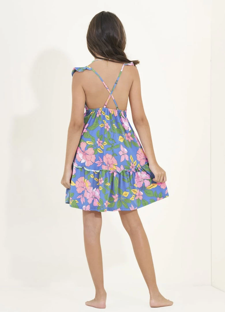 Maaji short dress for girls with ruffle details and crossed back, ideal for the sunny days with family