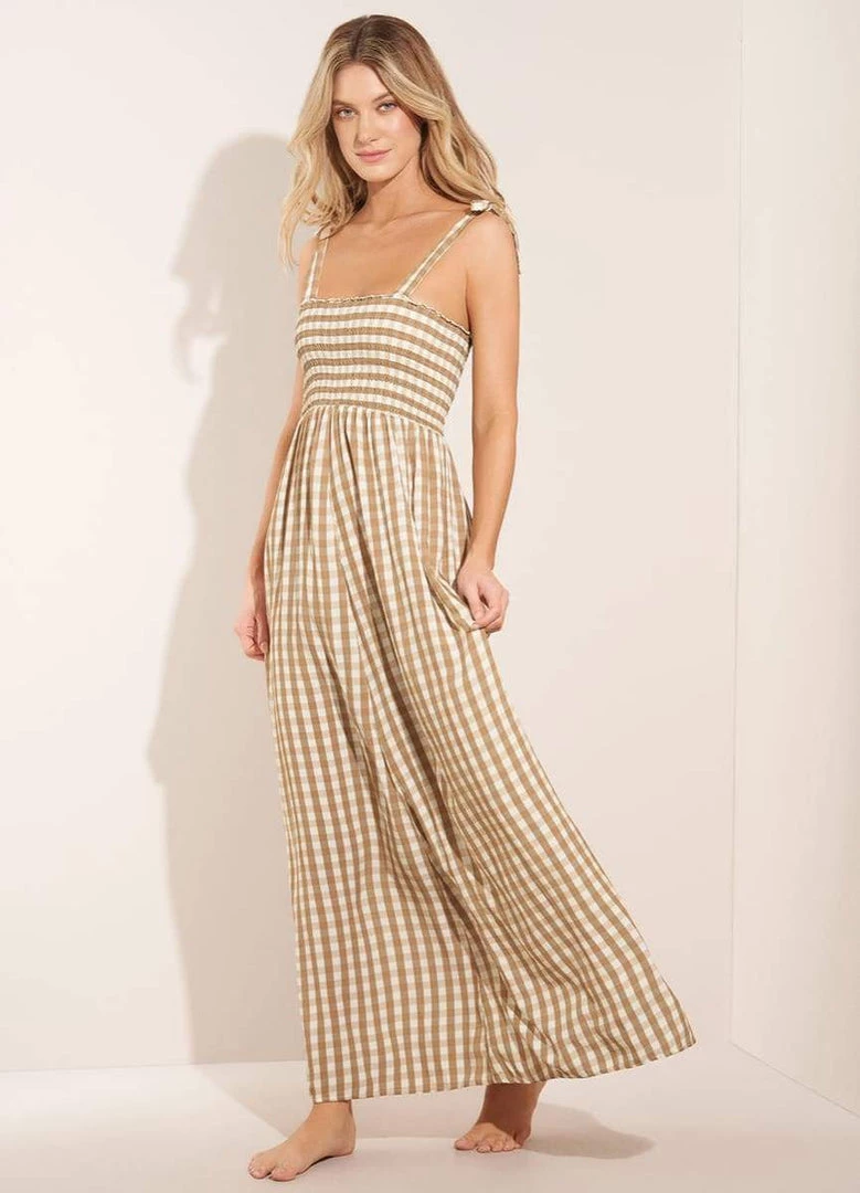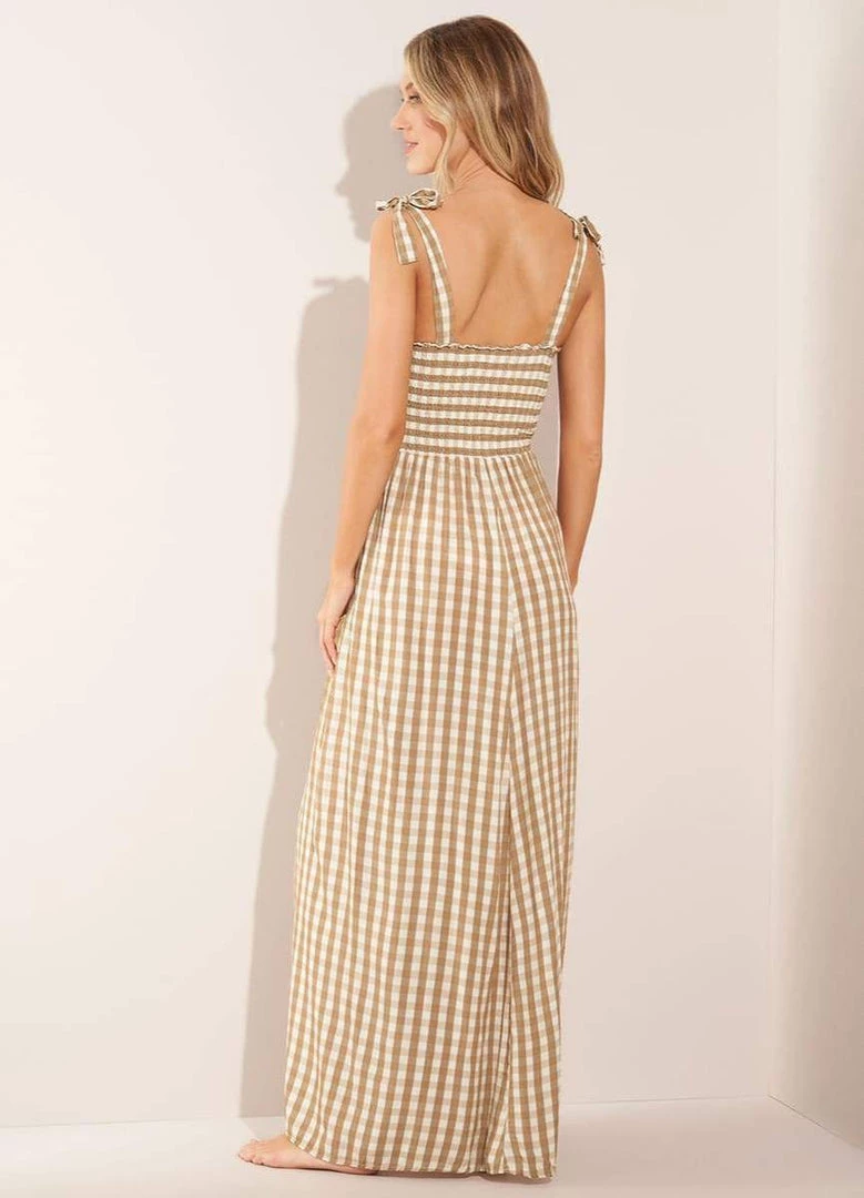 Smocked silhouettes you will love and this long dress. The Julieta is a maxi dress that will provide comfort and a stylish look!. This piece features a Maajical print, A-line shaping, and soft, lightweight fabric. The tassel embellished drawstring cord may be tied in the shoulders like the strap. It is perfect for any occasion at the beach or a night walk by the shore!