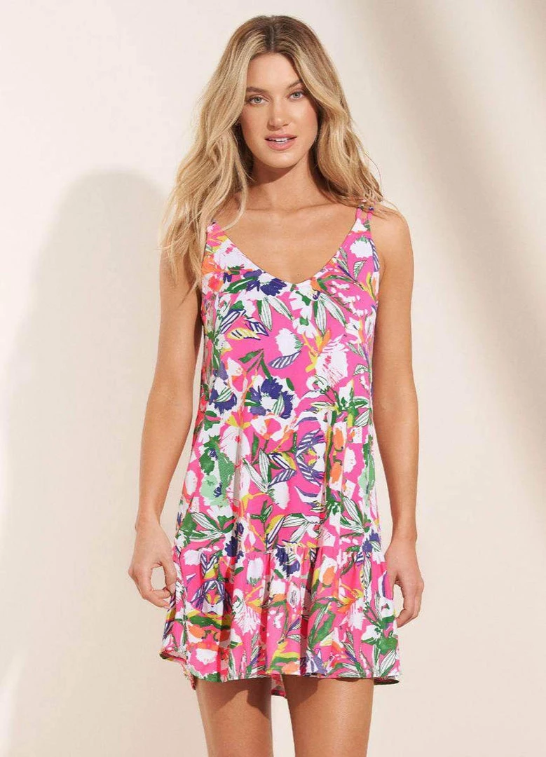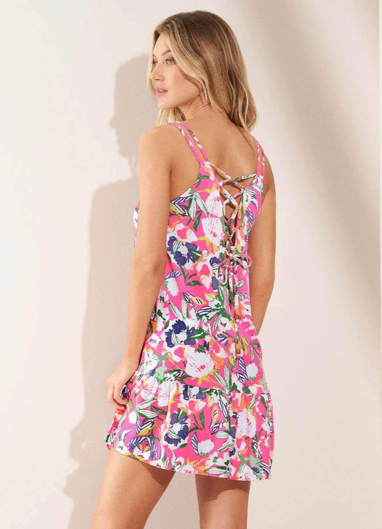Not just for the beach! With the Mermaizing, you can anywhere the day takes you. This short beach dress features a unique Maaji print, empire waist, “A” hemline, v-neckline, and crisscross tie back trimmed with coordinating tassels. Wear it in two different ways for an authentic and unique look.