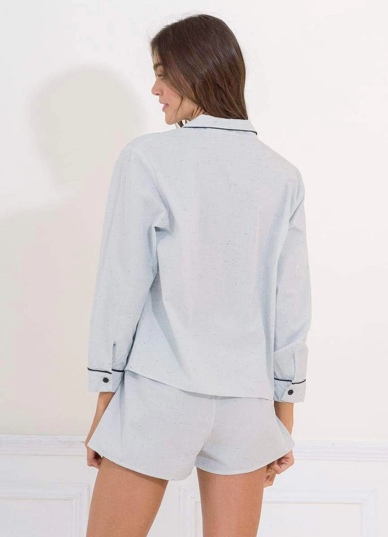 Karin classic Pj’s are always a must-have! This long sleeve shirt and its wide shorts are perfect for staying at home, a slumber party with friends or for the holiday season.