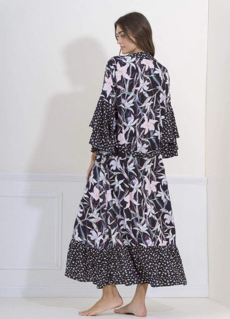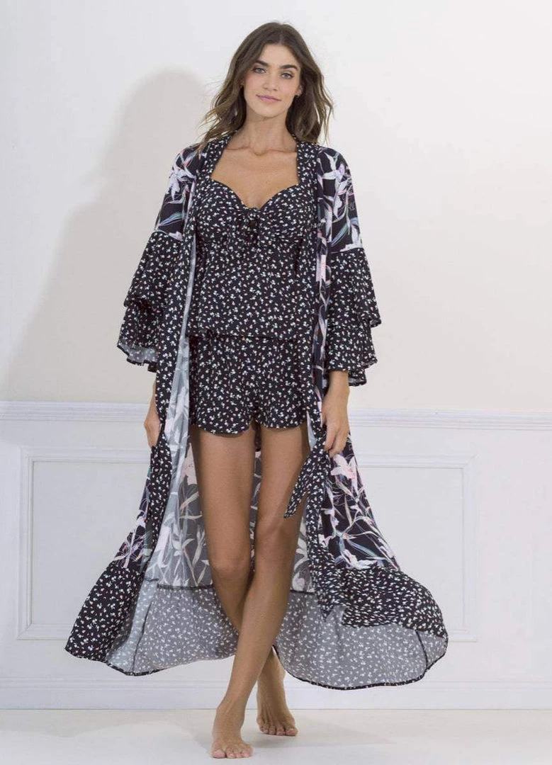 Our three-quarter and wide sleeves long Kimono es a Maagical piece for women that can be used over your favorite pajamas or swimming suit.