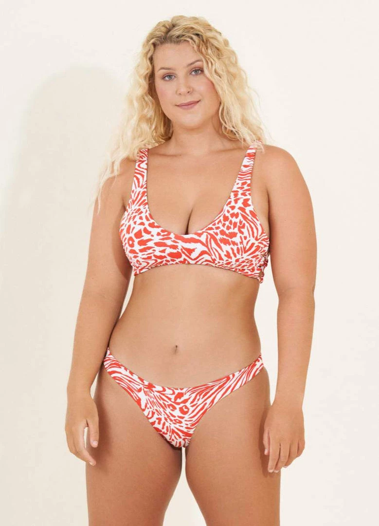A stroll by the beach with the Glee is a great choice. Comfortable silhouette, vivid colors, and sporty fit. This piece has wide straps, lace-up on the sides, and perfect coverage for you to enjoy a tanning sesh or a playful day.