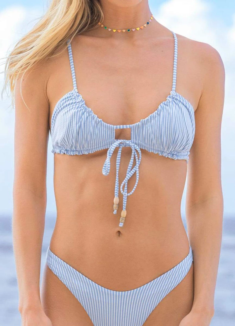 Add our bikini top, Clementine, to your beach bag and get ready to have all the eyes on your stylized body! Create some fun knotted look at the front or at the back and look trendy with its reversible Maajical prints
