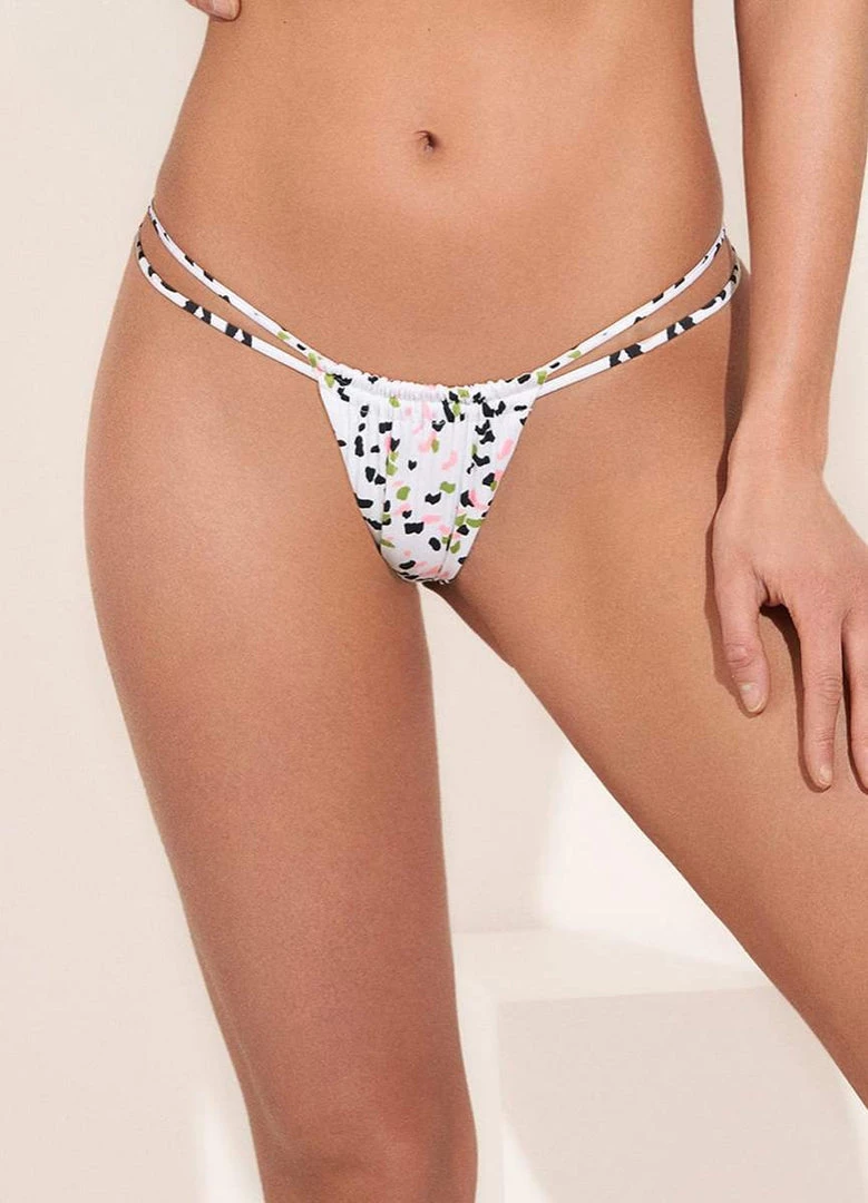 Selva is a mid-rise bikini bottom to show off your curves, giving you all the right tropical vibes you need for your vacations at the beach. With its thin and strappy side, you will get the shade you wish, and with the sliding panels, you will control the coverage both front and back.