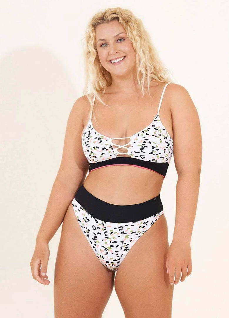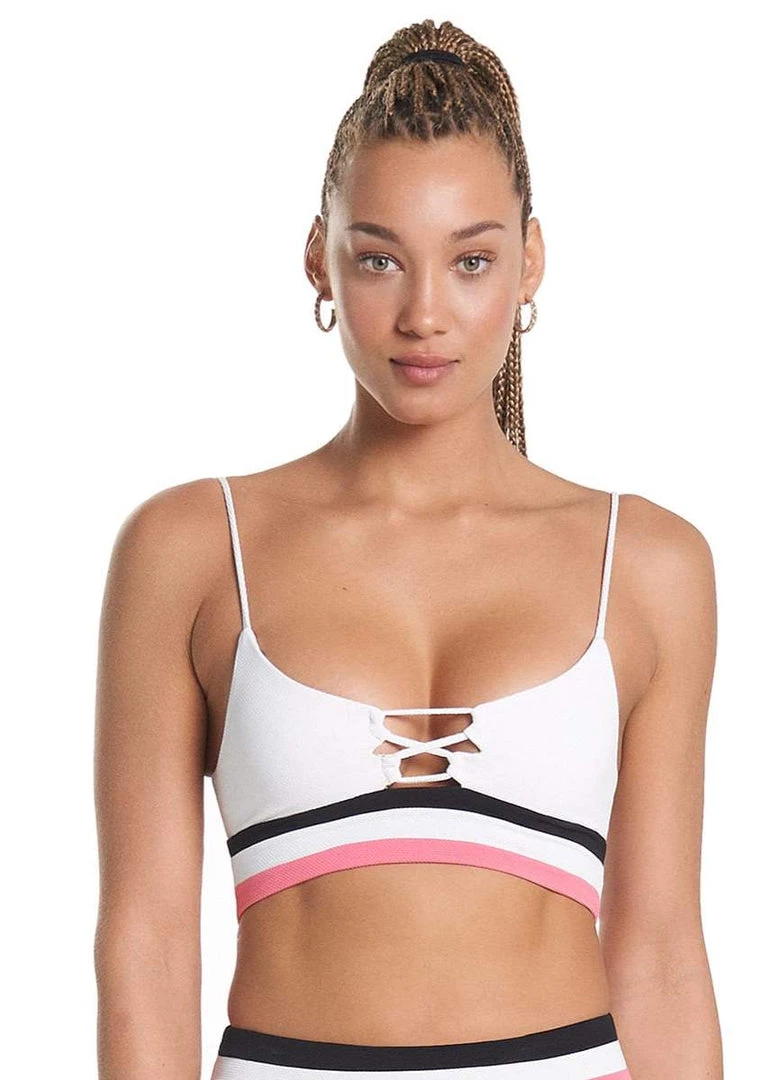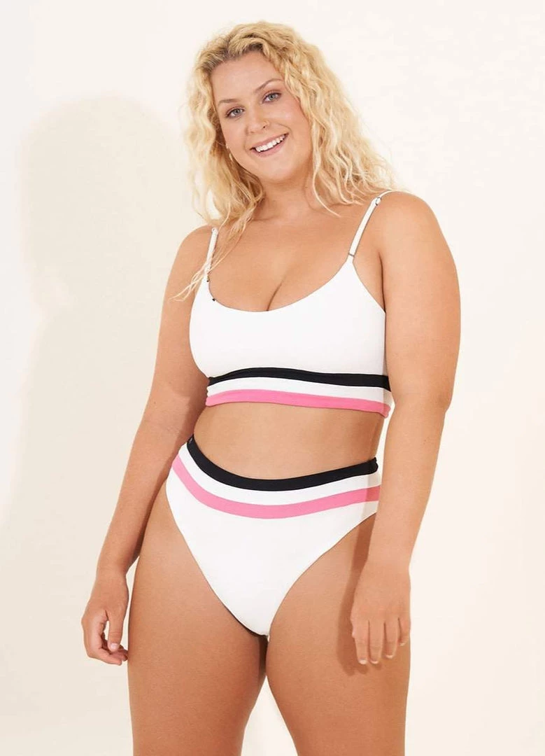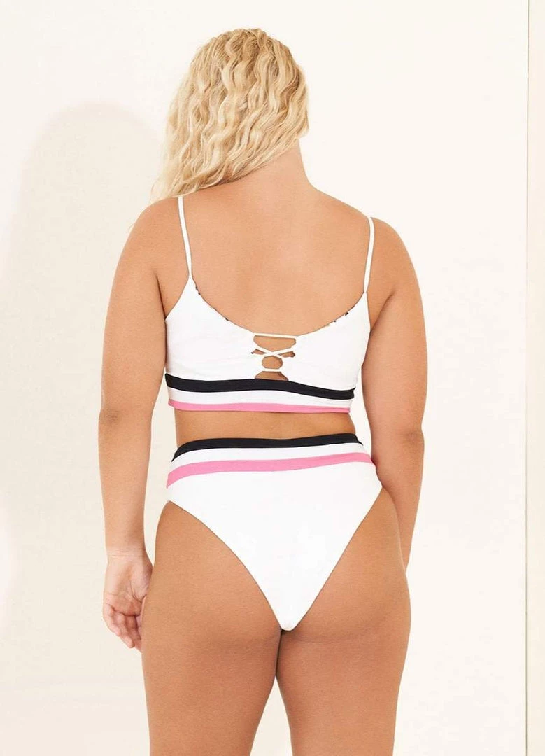 Color blocks and sporty silhouettes are a fashion statement. That’s why we created Rubi. With moderate coverage and adjustable straps, this top gives you four ways to wear it, giving you different looks each time! Pair this bikini top with the Silvi color block bottom for a match made in heaven.